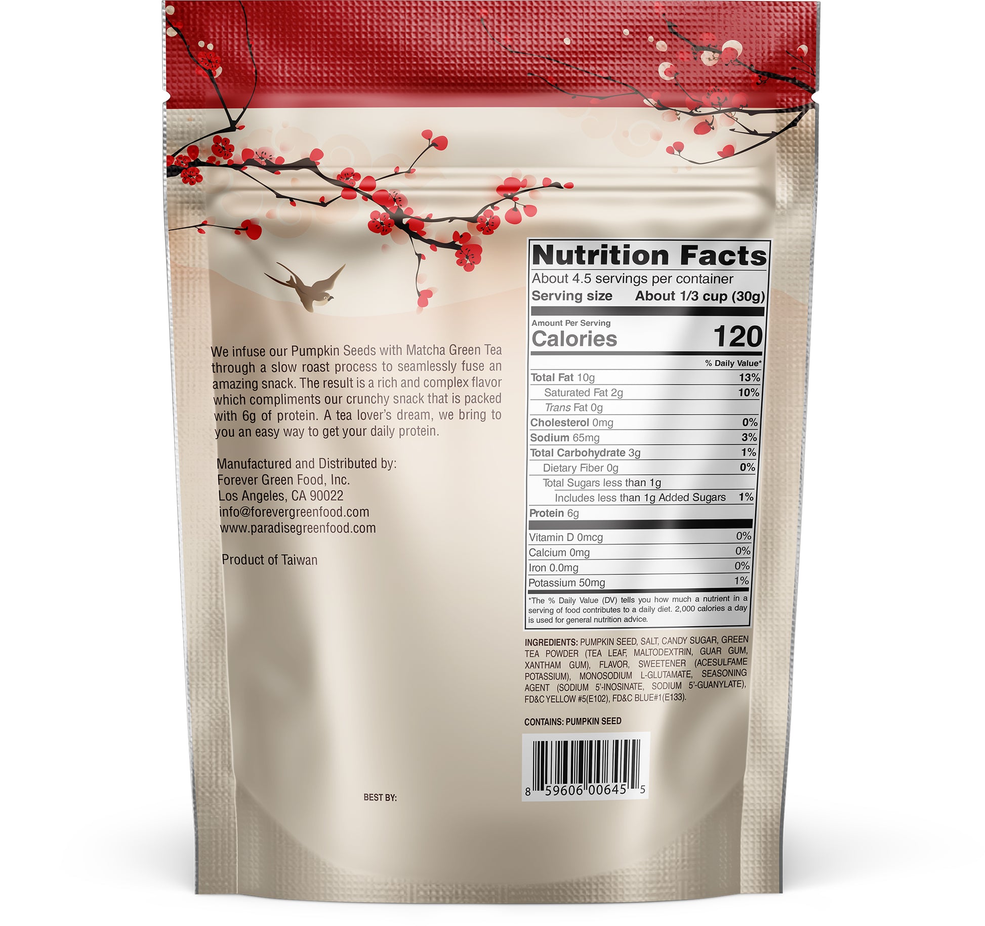We infuse our Pumpkin Seeds with Matcha Green Tea through a slow roast process to seamlessly fuse an amazing snack. The result is a rich and complex flavor which compliments our crunchy snack that is packed with 6g of protein. A tea lover’s dream, we bring to you an easy way to get your daily protein.